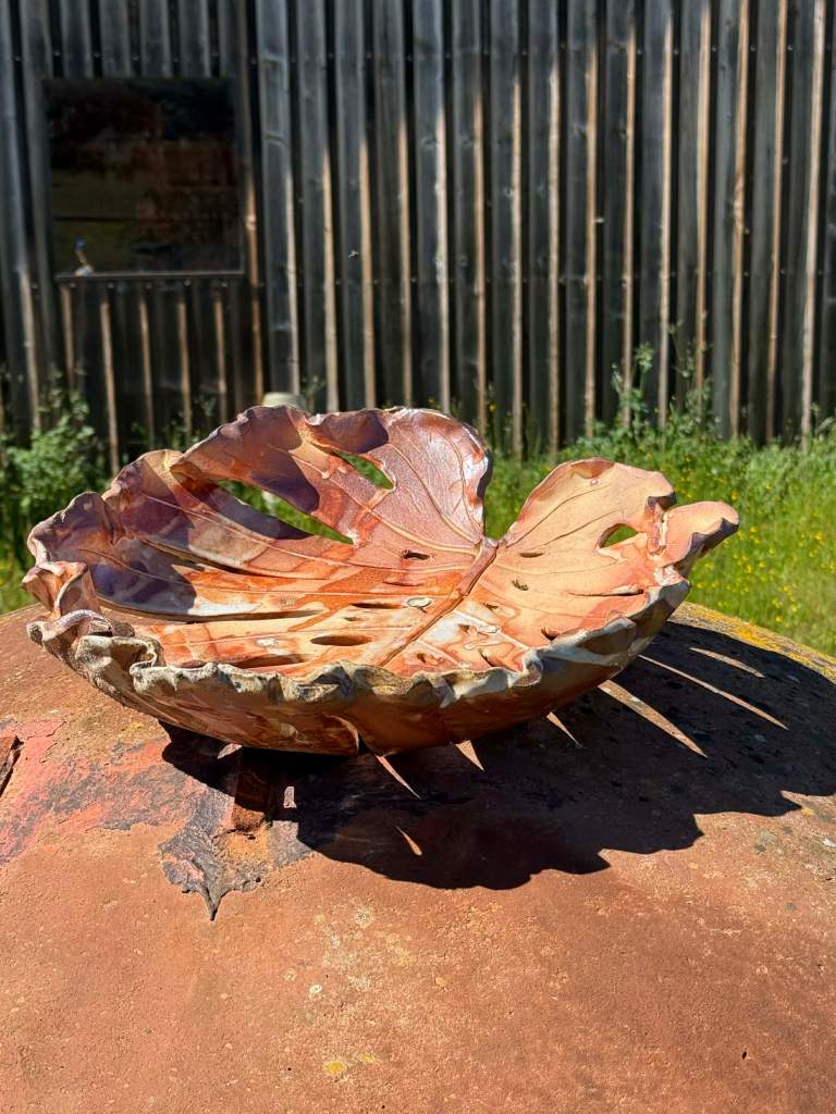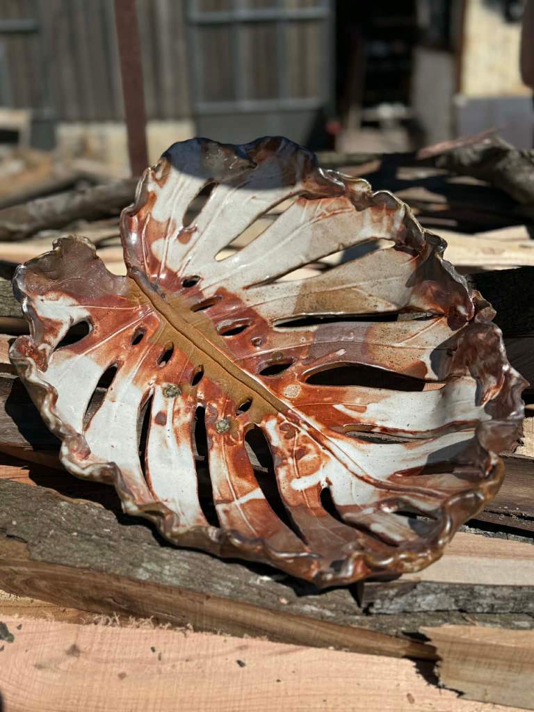 Marketa Adamek Bastos is a Lisbon based Swedish ceramic artist. But she prefers to be called a global nomad due to her roaming lifestyle. Outside of Marketa’s studio there is always a green garden. She likes to start her creative process with a nature walk, and when something interesting catches her eye she brings it back to her atelier. She works with high fire stoneware clay, which she rolls into slabs and prints her leaves on and then shapes into bowls and plates. Her vases are a combination of wheel thrown and coiling work. Some vases are altered or carved. All of Marketa’s pieces are covered in exuberant colored glazes. She enjoys creating her own unique glazes from minerals, oxides and wood ash. Each piece is fired in an electrical kiln to cone 8 or 9. Whenever possible she also fires in a wood kiln. Each piece will be refired until a desired result is achieved. Due to rising environmental concerns, Marketa works with a small production based on careful planning and understanding of the raw materials to reduce waste and mishaps.